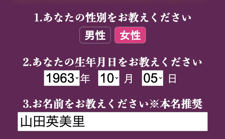 性別・生年月日・名前を送るだけです!
