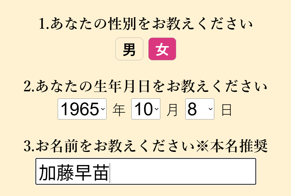 性別・生年月日・名前を送るだけです!
